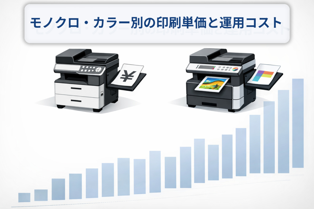- モノクロ・カラー別の印刷単価と運用コスト
